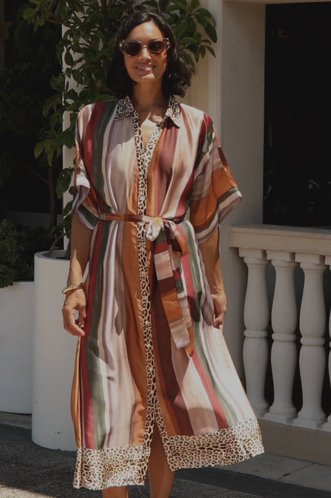 Unleash your style with the Stella Short Sleeve Dress, a striking fusion of classic stripes and fierce animal print. This button-through midi is crafted for the woman who isn't afraid to stand out, offering sophisticated play on patterns that transition perfectly from a polished lunch date to an evening out.