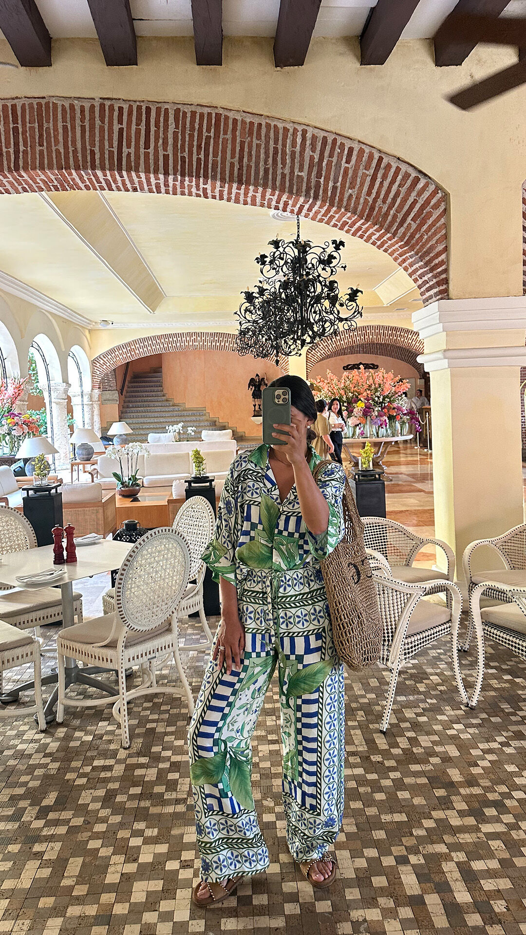 Get that resort-ready feeling, no matter where you are. The eye-catching print blends lush tropical leaves with a dynamic mosaic-inspired geometric pattern in brilliant shades of blue, white and green. Crafted from 100% soft, flowing rayon, the Tonya Dress drapes beautifully and feels luxuriously cool against the skin–perfect for sun-drenched days.